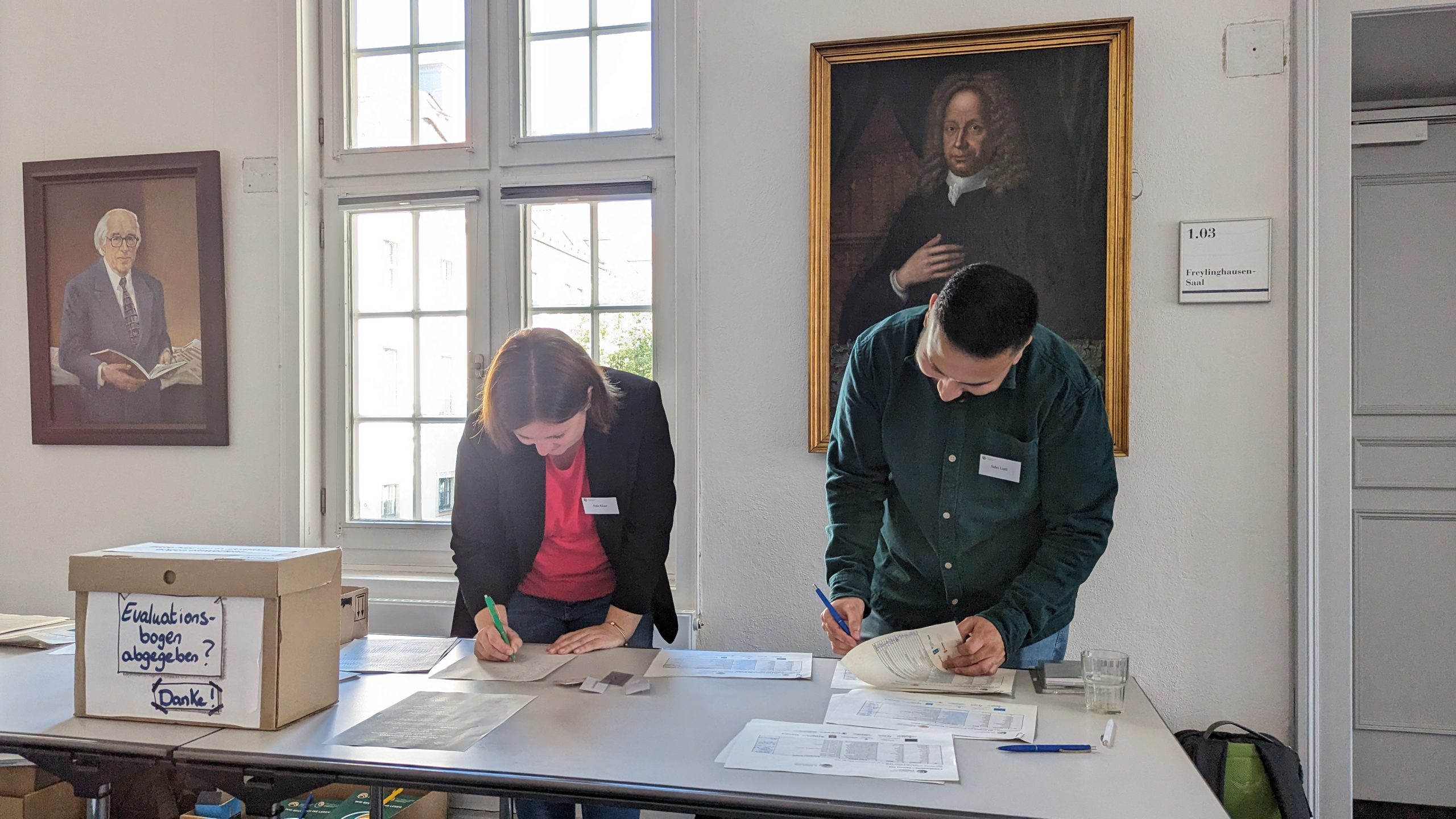 Zum Mittag trafen sich die Teilnehmer*innen im Hof des altehrwürdigen Gebäudes wieder und vertieften sich bei Sonnenschein und gutem Essen in fachübergreifende Gespräche.